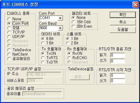 Com Port »ç¿ëÇÒ Serial Æ÷Æ®ÀÇ ¹øÈ£¸¦ ¼³Á¤ÇØ ÁØ´Ù. ÀϹÝÀûÀÎ PC¿¡´Â Com1, Com2ÀÇ µÎ°³°¡ ¼³Ä¡µÇ¾î À־ ¸ÖƼÆ÷Æ®¿Í °°Àº È®Àå Åë½Å Æ÷Æ®¸¦ »ç¿ëÇϸé COM1~COM256±îÁö »ç¿ëÇÒ ¼ö ÀÖ´Ù.