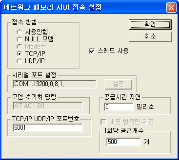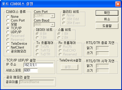 µð¹ÙÀ̽ºÁ¾·ù : ¼¹ö¿Í ¿¬°áµÈ Åë½Å¹æ¹ýÀ» ¼³Á¤ÇÏ¸é µÈ´Ù. ¿©±â¼´Â TCP/IP ¼³Á¤.
