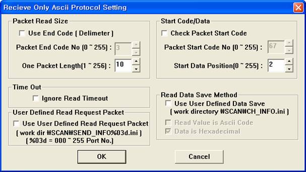 µ¥ÀÌÅÍ ³¡ ¹®ÀÚÄÚµå( 0 ~ 255 ) , »ç¿ëÀÚ Á¤ÀÇ ÀÐÀº °ª ÀúÀ广¹ý ÁöÁ¤, »ç¿ëÀÚ Á¤ÀÇ ÀÐÀº °ªÀÇ ASCII ÄÚµå ¿©ºÎ, »ç¿ëÀÚ Á¤ÀÇ ÀÐÀº °¢ µ¥ÀÌÅÍÀÇ 16Áø¼ö ¿©ºÎ, »ç¿ëÀÚ Á¤ÀÇ Àб⠿䱸 ÆÐŶÀÇ »ç¿ë¿©ºÎ,