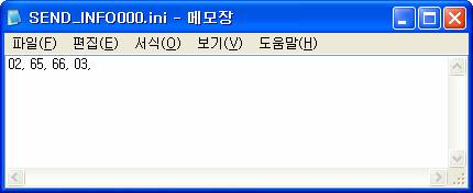 1) ÆÄÀÏÀÇ Ã¹ ÁÙ¿¡ ÅØ½ºÆ®·Î ÀÛ¼º. 2) °¢ ÀÎÀÚ´Â , (ÄÞ¸¶)·Î ±¸ºÐÇÑ´Ù. 3) ÃÖ´ë 256°³ÀÇ Àбâ Á¤º¸¸¦ ÀÛ¼º. 4) 0 ~ 255 »çÀÌÀÇ ASCII ÄÚµå °ªÀ» 10Áø¼ö·Î ÀÔ·ÂÇÑ´Ù. ¿¹) 02, 65, 66, 03, |