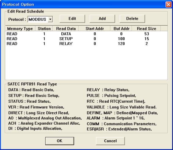 <±×¸² 2> SATEC RPT091 ÇÁ·ÎÅäÄÝ ÀÇ ¿É¼Ç ´ëÈ»óÀÚ