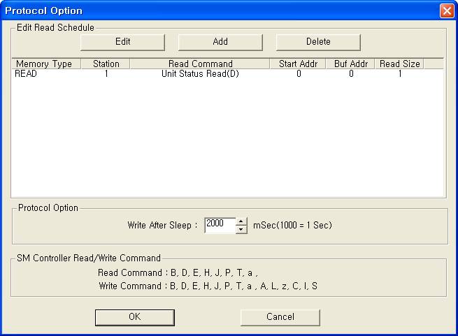 <±×¸² 3> SM Controller µå¶óÀ̹öÀÇ Åë½Å Àб⠼³Á¤ Ãß°¡/ÆíÁý ´ëÈ»óÀÚÀÇ ¿¹
