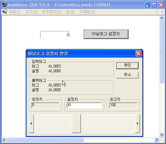 tag - Á¦¾î¸¦ ÇϰíÀÚ ÇÏ´Â AI³ª DI Tag À̸§, űװ¡ DIű×À̸é ON/OFF Á¦¾î ¹Ú½º°¡ ³ªÅ¸³ª°í AIű×ÀÌ¸é ¼³Á¤Ä¡ º¯°æ ´ëÈ »óÀÚ°¡ ³ªÅ¸³´Ù.