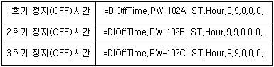¼¿ ¹®Àå ÆíÁý ¿¹) =DiOffTime,PW-102C ST,Hour,9,9,0,0,0,