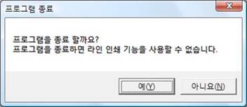 ¡®ÆÄÀÏ|Á¾·á¡¯ ¸Þ´º¸¦ ¼±ÅÃÇϸé <±×¸² 2>¿Í °°Àº Á¾·á È®ÀÎ ¸Þ½ÃÁö¸¦ Ç¥½ÃÇÏ¿© ¶óÀÎ Àμ⠰ü¸®±âÀÇ Á¾·á ¿©ºÎ¸¦ È®ÀÎÇÑ´Ù.