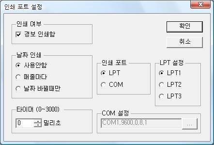 ȯ°æ¼³Á¤ ±ÛÀÚ¸Þ´º´Â <±×¸² 3>°ú °°ÀÌ ¡®ÀÎ¼â Æ÷Æ® ¼³Á¤¡¯, ¡®Àμ⠰£°Ý ¼³Á¤¡¯, ¡®°æº¸ Á¾·ùº° Á¦¾î¸í·É ¼³Á¤¡¯ ¸Þ´º°¡ ÀÖ´Ù.