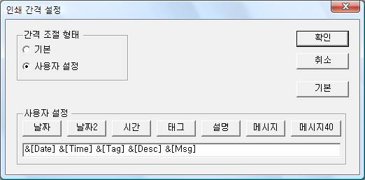 Âü°í) Àμ⠰£°Ý ¼³Á¤ ½Ã °£°Ý Á¶Àý ÇüŰ¡ ±âº»ÀÏ ¶§ÀÇ Àμ⠰£°Ý¿¡ ´ëÇÑ ¸í·É¾î´Â Ç×»ó &[Date] &[Time] &[Tag] &[Desc] &[Msg] ÀÌ´Ù.