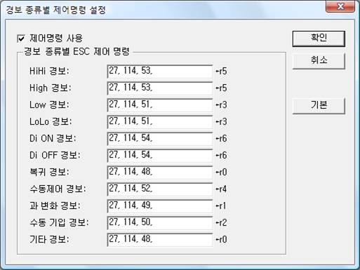 ¡®È¯°æ¼³Á¤|°æº¸ Á¾·ùº° Á¦¾î¸í·É ¼³Á¤¡¯ ¸Þ´º¸¦ ¼±ÅÃÇϸé <±×¸² 6>°ú °°Àº °æº¸ Á¾·ùº° Á¦¾î¸í·É ¼³Á¤ ´ëÈ»óÀÚ°¡ ³ªÅ¸³´Ù.