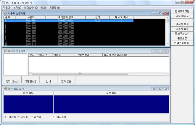 AutoBase µð·ºÅ͸®¿¡¼ SMS.exe¸¦ ½ÇÇàÇϸé <±×¸²1>°ú °°Àº ¹®ÀÚ À½¼º ¸Þ½ÃÁö °ü¸®±â ȸéÀÌ ³ªÅ¸³´Ù.