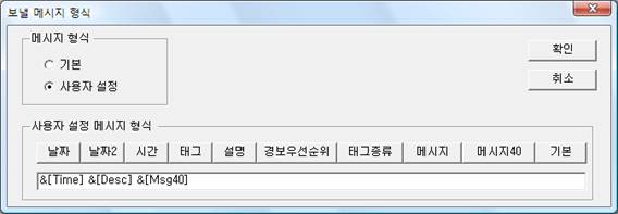 ±âº» ¸Þ½ÃÁö Çü½ÄÀ» ±âº» ¼³Á¤(&[Time] &[Desc] &[Msg40])À¸·Î ¼³Á¤ÇÑ´Ù.