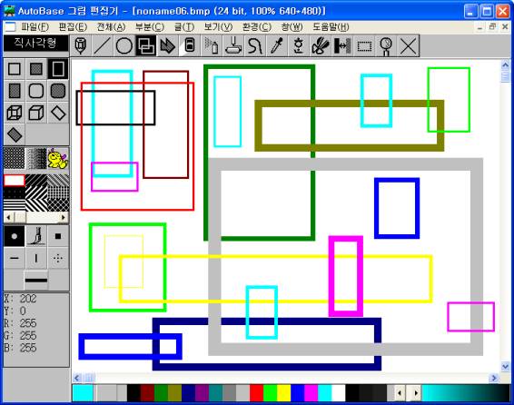 Á÷ »ç°¢ÇüÀ» ±×¸®°í ½ÍÀº À§Ä¡·Î ¸¶¿ì½º¸¦ ¿Å±ä ÈÄ ¸¶¿ì½º ¿ÞÂÊ ¹öưÀ»( ENTER Ű ) ´©¸£¸é ¼±ÅÃµÈ ¿ÞÂÊ »ö»ó ¹× ¼± ±½±â·Î Á÷ »ç°¢ÇüÀÌ ±×·ÁÁø´Ù.