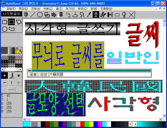 »ç°¢Çü Å©±â¸¦ ¸¶¿ì½º ¿À¸¥ÂÊ ¹öưÀ» ´·¯¼ Á¶ÀýÇÏ°í ±ÛÀÚ ÀÔ·Â ´ëÈ»óÀÚ¿¡ ±ÛÀ» ¾´ ´ÙÀ½ ±Û¾¾¸¦ ¾²°í ½ÍÀº À§Ä¡¿¡ »ç°¢ÇüÀ» À§Ä¡½ÃŲ ÈÄ ¸¶¿ì½º ¿ÞÂÊ ¹öưÀ» ( ENTER Ű ) ´©¸£¸é »ç°¢Çü ³»¿¡ ÀÔ·ÂµÈ ±ÛÀÚ°¡ ¾²¿©Áø´Ù.