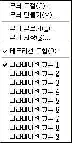 ä¿ò »óÀÚÀÇ ºÎ ¸Þ´º´Â <±×¸² 4>¿Í °°ÀÌ ¹«´ÌÁ¶Àý, ¹«´Ì ºÎ¸£±â, ¹«´ÌÀúÀå, Å׵θ® ¼± Æ÷ÇÔ, ±×¶óµ¥ÀÌ¼Ç È½¼ö ¼³Á¤ÀÇ ¸Þ´º°¡ ÀÖ´Ù.