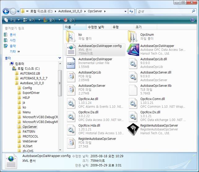 ÇÁ·Î±×·¥À» ¼³Ä¡ÇÑ µð·ºÅ丮 ÇϺÎÀÇ OpcServer µð·ºÅ丮¸¦ ¼±ÅÃÇϸé <±×¸² 1>°ú °°Àº ÆÄÀϵéÀÌ ÀÖ´Ù.