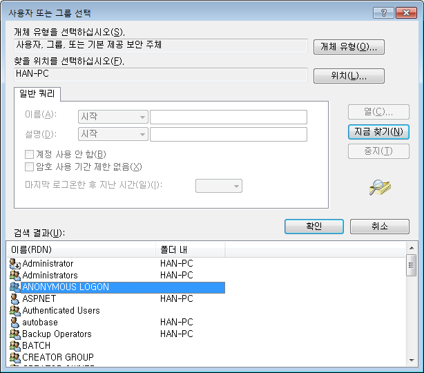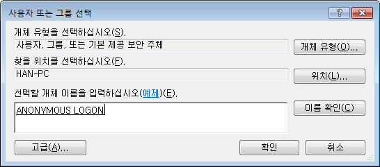 ¹öưÀ» ÀÌ¿ëÇÏ¿© "Anonymous Logon"°èÁ¤À» ¼±ÅÃÇÑ´Ù.