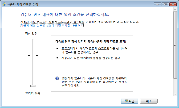 »ç¿ëÀÚ °èÁ¤ ÄÁÆ®·Ñ »ç¿ëÀ» "»ç¿ë ¾È ÇÔ"À¸·Î ¼³Á¤ÇØ¾ß ÇÑ´Ù.
