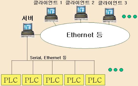 ¶ÇÇÑ Å¬¶óÀÌ¾ðÆ® ½Ã½ºÅÛÀº ¼­¹ö¿¡¼­ PLC µî°ú Åë½ÅÇÑ µ¥ÀÌÅ͸¦ Àоî¿Í¼­ °¨½Ã/Á¦¾î¸¦ ÇÒ ¼ö ÀÖ´Â ±¸Á¶·Î ¼³°èµÇ¾î ÀÖ´Ù.