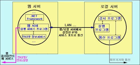 <±×¸² 2> À¥ ¼¹ö¿Í ·ÎÄà ¼¹ö°¡ ¼·Î ´Ù¸¥ ÄÄÇ»ÅÍ¿¡ ¼³Ä¡ÇÑ °æ¿ì °¢ ÇÁ·Î±×·¥ ±¸¼º È帧µµ