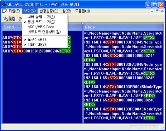 Åë½ÅÄÚµå º¸±â : ¼¹ö¿Í Ŭ¶óÀÌ¾ðÆ® ½Ã½ºÅÛ°úÀÇ Åë½ÅÇÏ´Â Äڵ庸±â À©µµ¿ì¸¦ Ç¥½ÃÇϰųª ¼û±â´Â ¸Þ´º.