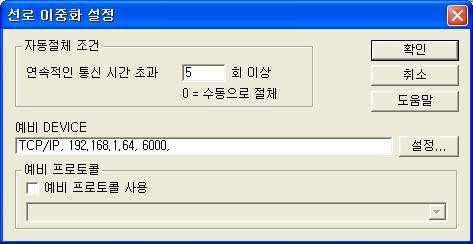 ´·¯¼ ÀÚµ¿Àýü Á¶°Ç°ú ¿¹ºñ DEVICE( TCP/IP, ¼¹ö2ÀÇ IP¹øÁö, ¼ºñ½º Æ÷Æ® )¸¦ ÀÔ·ÂÇÑ´Ù. ( <±×¸² 3> ÂüÁ¶ )