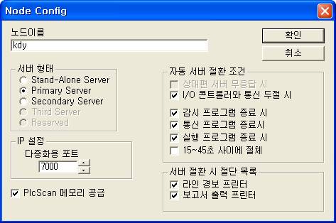 Primary¼­¹öÀÇ ³×Æ®¿öÅ© ¼­¹ö ÇÁ·Î±×·¥ : <±×¸² 2>ÀÇ ¼­¹ö ¼³Á¤ ´ëÈ­»óÀÚ¿¡¼­ ¡®Primary Server¡¯¿Í ¡®PlcScan ¸Þ¸ð¸® °ø±Þ¡¯À» ¼±ÅÃÇÏ°í ±âŸ ÇÊ¿äÇÑ ¼³Á¤À» ÇÑ´Ù.