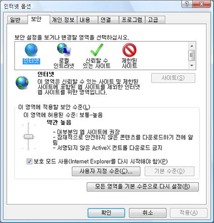ÀÎÅÍ³Ý ¿É¼Ç¼³Á¤ ´ëÈ»óÀÚÀÇ ¡®º¸¾È¡¯ ÅÇÀ» ¼±ÅÃÇϸé <±×¸² 1>°ú °°Àº ´ëÈ»óÀÚ°¡ ³ªÅ¸³´Ù.