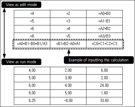 <Figure 1> Example of inserted four fundamental arithmetic operations at View as run mode