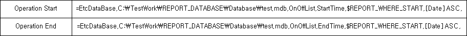Example of editing a cell text) =EtcDataBase,C:\TestWork\REPORT_DATABASE\Database\test.mdb,OnOffList,EndTime,$REPORT_WHERE_START,[Date] ASC,