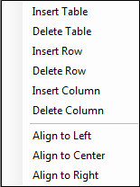 Delete Table : Selected table(row, column, or cell) is deleted.