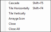 Close All(Ctrl + F4) : It close the all MDI screen.