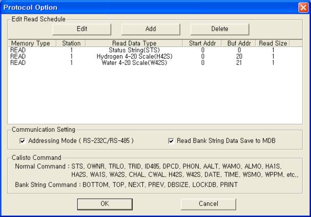 <±×¸² 3> CALISTO µå¶óÀ̺êÀÇ Åë½Å Àб⠼³Á¤ READ Ãß°¡/ÆíÁý ´ëÈ»óÀÚÀÇ ¿¹