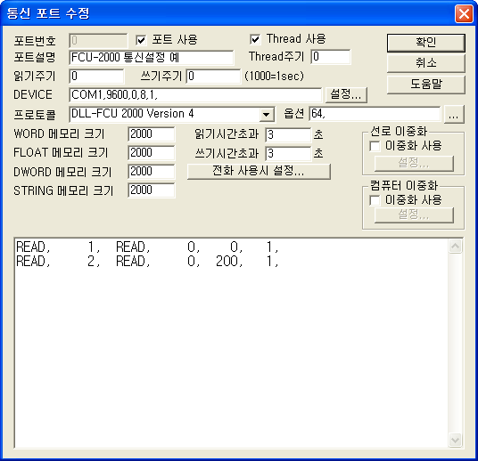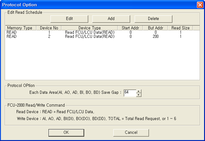 <±×¸² 3> FCU 2000 Version 4 Åë½Å µå¶óÀ̹öÀÇ Àб⠼³Á¤ READ Ãß°¡/ÆíÁý ´ëÈ»óÀÚÀÇ ¿¹