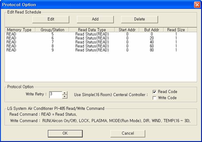 <±×¸² 3> LG System Air Conditioner PI-485 µå¶óÀ̹öÀÇ Åë½Å Àб⠼³Á¤ READ Ãß°¡/ÆíÁý ´ëÈ­»óÀÚÀÇ ¿¹