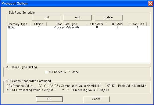 <±×¸² 3> Autonics MT Series µå¶óÀ̹öÀÇ Åë½Å Àб⠼³Á¤ READ Ãß°¡/ÆíÁý ´ëÈ»óÀÚÀÇ ¿¹