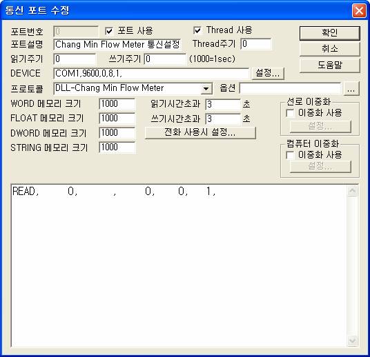 ÁÖÀÇ) Chang Min Flow Meter´Â Àåºñ¿¡¼ ÁÖ±âÀûÀ¸·Î( 1ÃÊ ) º¸³»¿À´Â µ¥ÀÌÅ͸¦ Àд ±¸Á¶·Î µÇ¾î ÀÖÀ¸¹Ç·Î Àб⠼³Á¤Àº À§ÀÇ ¿¹Ã³·³ ÇÑ ÁÙ¸¸ ÀÛ¼ºÇÏ¸é µÈ´Ù.