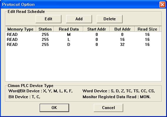 <±×¸² 3> CIMON PLC Serial ÇÁ·ÎÅäÄÝÀÇ READ Ãß°¡/ÆíÁý ´ëÈ»óÀÚÀÇ ¿¹