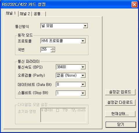 <±×¸² 10> CIMON PLCÀÇ RS232C/422Ä«µå ¼³Á¤¸Þ´º ȸé
