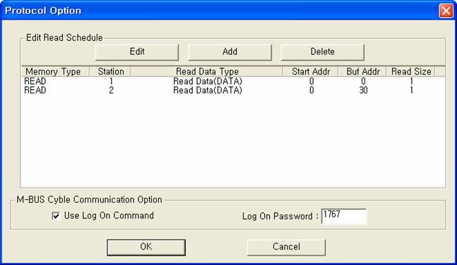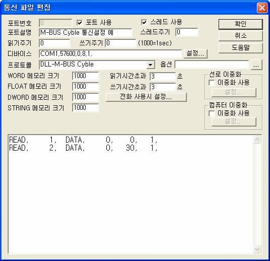 <±×¸² 3> M-BUS Cyble µå¶óÀ̹öÀÇ Åë½Å Àб⠼³Á¤ READ Ãß°¡/ÆíÁý ´ëÈ»óÀÚÀÇ ¿¹