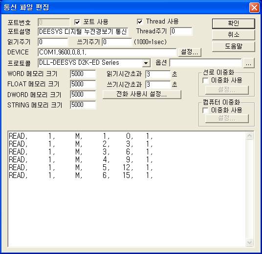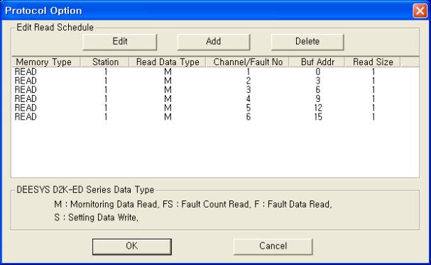 <±×¸² 3> DEESYS D2K-ED Seriesµå¶óÀ̺êÀÇ Åë½Å Àб⠼³Á¤ READ Ãß°¡/ÆíÁý ´ëÈ»óÀÚÀÇ ¿¹