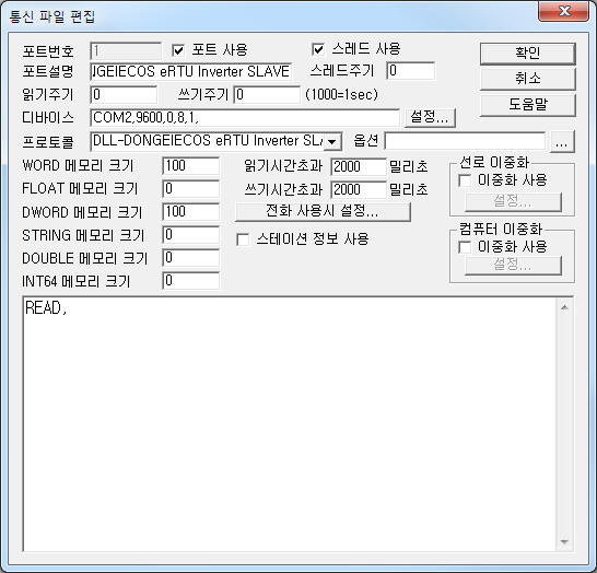 DONGEIECOS eRTU Inverter SLAVE Åë½Å µå¶óÀ̹öÀÇ Àбâ Çü½ÄÀº 'READ,' ÇÑ ÁÙ¸¸ ÀÛ¼ºÇÏ¸é µÈ´Ù.