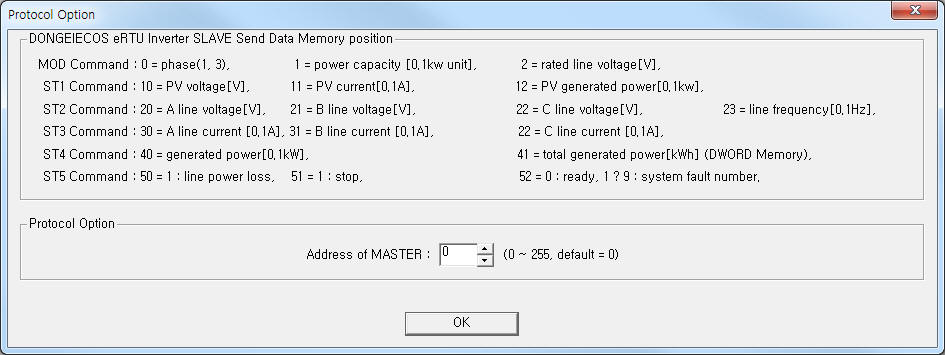 | <±×¸² 2> DONGEIECOS eRTU Inverter SLAVE Åë½Å µå¶óÀ̹öÀÇ ¿É¼Ç ´ëÈ»óÀÚÀÇ ¿¹ |