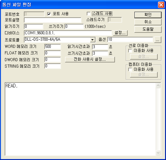 <±×¸² 1> DS-3700-4A/6A ÄÁÆ®·Ñ·¯ÀÇ Åë½Å¼³Á¤ ¿¹