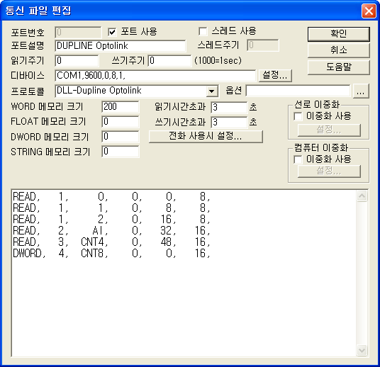 PORT : 0 Station : 1, ADDRESS : 0011 EXTRA1 : 1 ¶ó°í ¼³Á¤Çϸé DuplineÀÇ Device ID 1 ÀÇ 0011¹ø ¸Þ¸ð¸® °ªÀ» Á¦¾îÇÒ ¼ö ÀÖ°Ô µÈ´Ù.