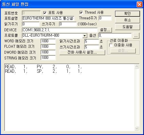 <±×¸² 1>Àº EUROTHERM CONTROLSÀÇ 800 Series ȣȯ Àåºñ¸¦ »ç¿ëÇÒ ¶§ÀÇ Åë½ÅÆÄÀÏ ÆíÁý ¿¹ÀÌ´Ù.