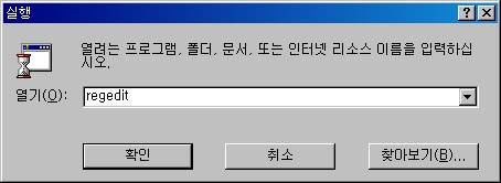 À©µµ¿ì ¡®½ÃÀÛ|½ÇÇ࡯ âÀ» ¿¾î¼ ¡®regedit¡¯ À» ½ÇÇàÇϸé <±×¸² 2>ÀÇ ·¹Áö½ºÆ®¸® ÆíÁý±â°¡ ¿¸°´Ù.
