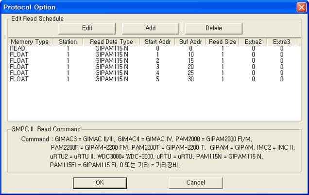 <±×¸² 3> GMPCII Åë½Å µå¶óÀ̹ö·Î GIPAM115 N ¸ðµ¨ÀÇ Àб⠼³Á¤ Ãß°¡/ÆíÁý ´ëÈ»óÀÚÀÇ ¿¹