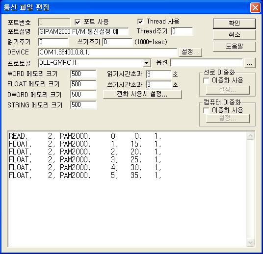 <±×¸² 1>Àº GMPCII Åë½Å µå¶óÀ̹ö·Î GIPAM2000 FI/M ¸ðµ¨À» »ç¿ëÇÒ ¶§ÀÇ Åë½Å ÆÄÀÏ ÆíÁý ¿¹ÀÌ´Ù.