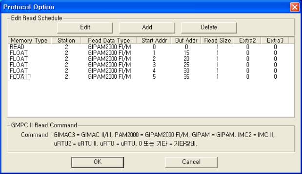 <±×¸² 3> GMPCII Åë½Å µå¶óÀ̹ö·Î GIPAM2000 FI/M ¸ðµ¨ÀÇ Àб⠼³Á¤ Ãß°¡/ÆíÁý ´ëÈ»óÀÚÀÇ ¿¹