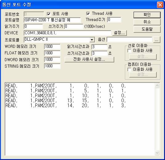 ÁÖÀÇ) GMPC II Åë½Å µå¶óÀ̹ö·Î GIPAM-2200 T ¸ðµ¨ÀÇ ÀÐÀº °ªÀº ÀÚ·áÀúÀå À§Ä¡ WORD/DWORD/FLOAT ¸Þ¸ð¸®¿¡ °°Àº °ªÀÌ( °ª Çü½Ä¸¸ ´Ù¸§ ) ÀúÀåÇÑ´Ù.