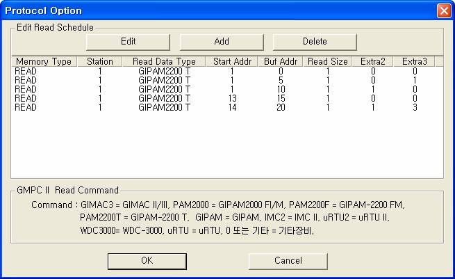 <±×¸² 1>Àº GMPCII Åë½Å µå¶óÀ̹ö·Î GIPAM-2200 T ¸ðµ¨À» »ç¿ëÇÒ ¶§ÀÇ Åë½Å ÆÄÀÏ ÆíÁý ¿¹ÀÌ´Ù.